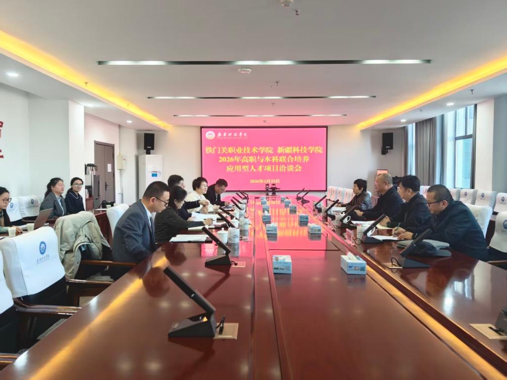 为推动兵地院校在应用型人才培养领域的深度合作,3月25日,铁门关职业技术学院相关部门负责人一行赴新疆科技学院开展专题调研,就申报2026年高等职业教育与本科教育联合培养应用型人才项目(“3+2”贯通培养模式)进行深入洽谈。