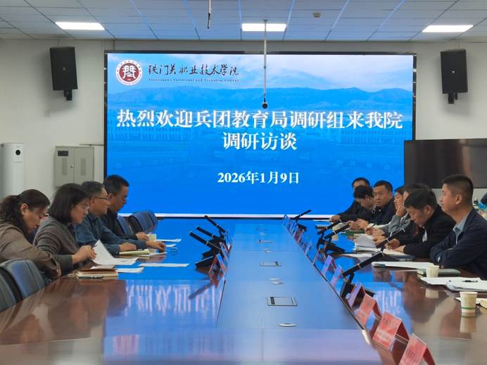 为做好兵团“十五五”教师队伍建设发展规划编制工作,提高编制工作的科学性、专业性和前瞻性,1月9日,兵团第一调研组走进铁门关职业技术学院。调研组组长、兵团党委、兵团原副秘书长黎兴平带领一行5人,与学院党委书记李贤良、院长苏强及相关部门、二级学院负责人、教师代表座谈交流。