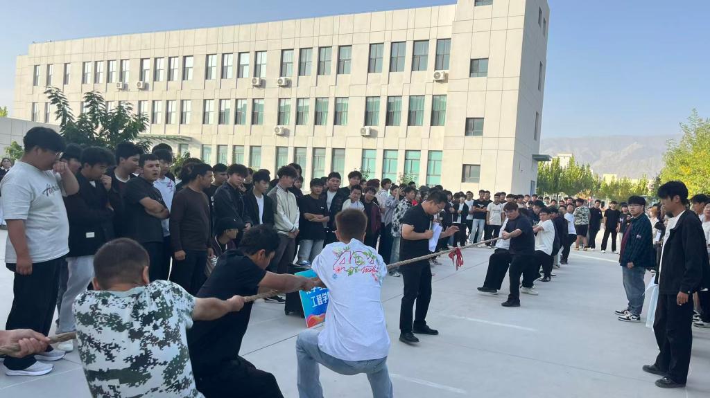 9月29日,铁门关职业技术学院化学与材料工程学院在精技楼前举办“迎新生”拔河比赛。学院2025级新生组成15支队伍,200余名新生参加活动。