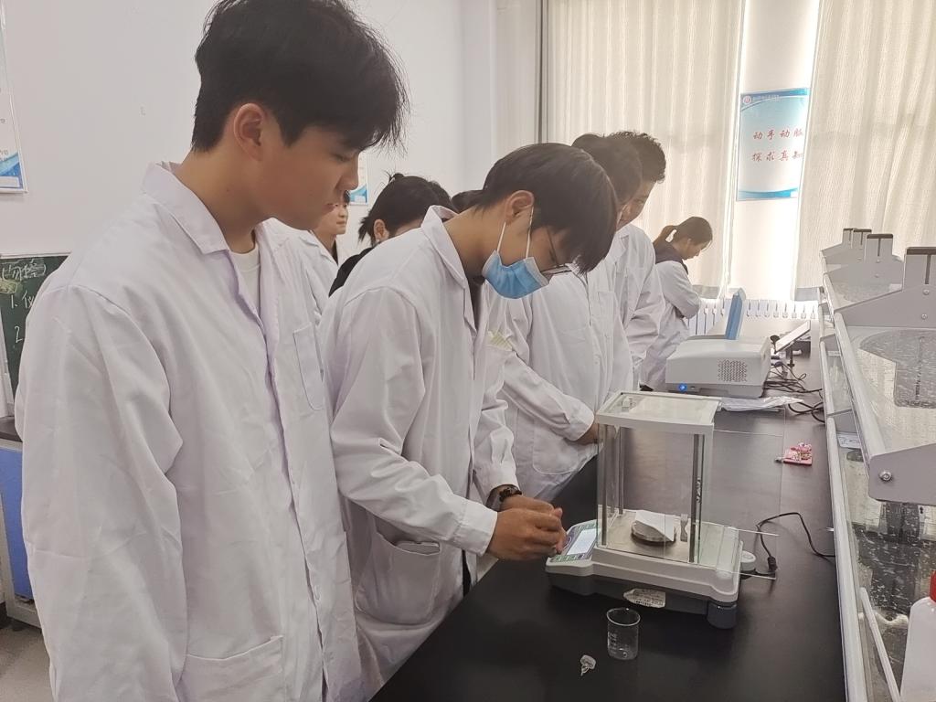 本次实训活动主要包括万分之一电子天平精确称量2.0000g食用盐和紫外-可见分光光度计的使用两个实验项目。实验进行的过程中,学习氛围浓厚,老师穿梭于各实验台之间,进行着“手把手”的悉心指导。在称量2.0000g食用盐的过程中,经过老师的指导,从天平的校准、称量瓶的拿取、样品的敲落手法到数据记录,学生们基本可以做到熟练操作。紫外-可见分光光度计作为物质定性、定量分析的利器,在药品研发、水质分析、食品安全等领域应用极为广泛。实验中,学生们以高锰酸钾标准溶液作为样本,完成了从开机预热、波长选择、空白校正到标准曲线绘制和未知样品测定的全过程。