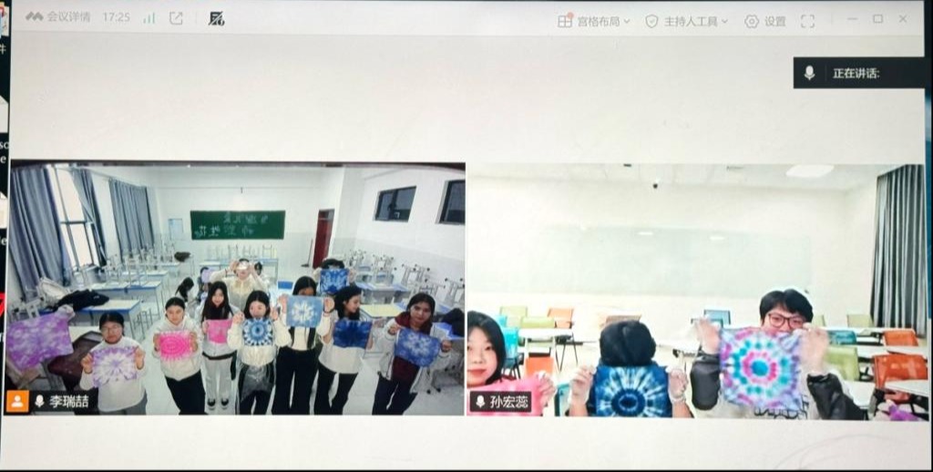 活动最后,两地学子共同展示扎染成果,交流制作心得与文化感悟,并通过线上合影记录这场跨越千里的文化交流时刻。