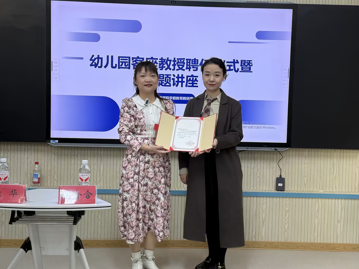 为深化产教融合、提升学前教育专业教学实效,11月24日至28日,铁门关职业技术学院教育艺术学院特邀第二师铁门关市第一幼儿园园长李晓霞、副园长桂华及第二幼儿园园长安丽丽,以客座教授身份在农牧楼三楼智慧教室开展专题授课。学院学前教育教研室部分教师及24级学生代表现场聆听学习,共同探寻学前教育实践教学新路径。