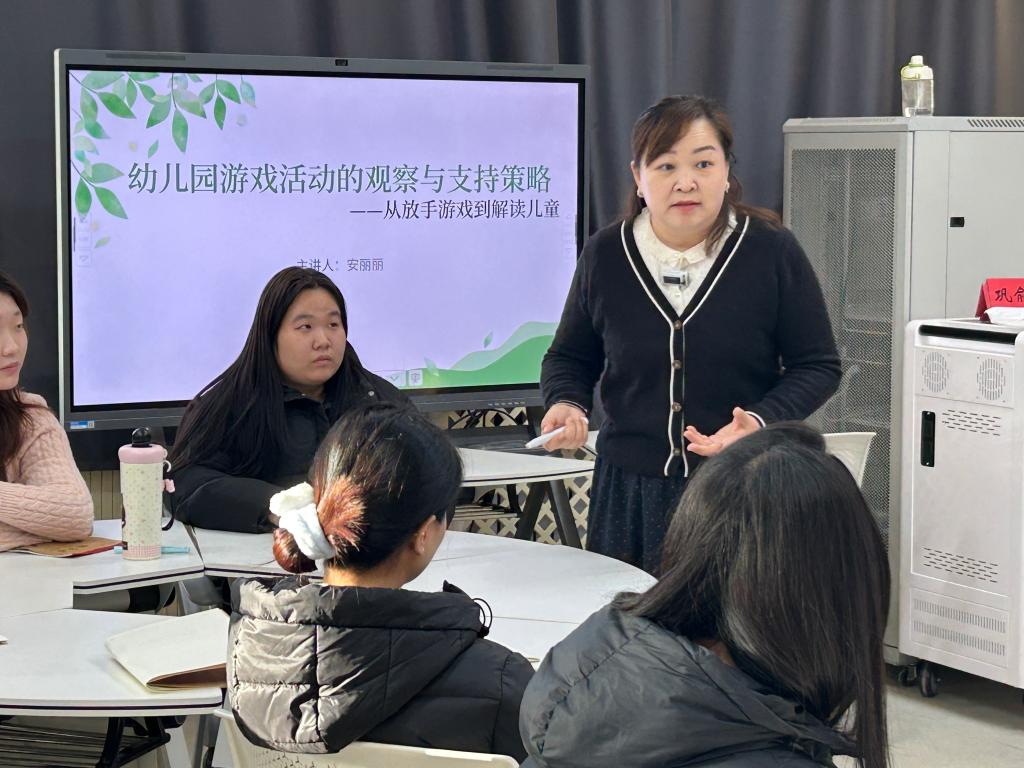 三位园长立足多年幼儿园一线管理与教学经验,带来兼具专业性与实操性的专题分享。桂园长以《幼儿行为观察与解读:从“看见”到“支持”的专业实践》为题,拆解观察维度、记录方法与分析逻辑,传授幼儿行为解读与引导的实战技能;李园长围绕《幼儿园环境创设的教育价值:打造会“说话”的儿童空间》,阐述“以幼儿为中心”的创设理念,详解空间规划、材料投放等实操要点;安园长聚焦《幼儿园游戏活动的观察与支持策略——从“放手游戏”到“解读儿童”》,传递科学支持原则,助力教师通过游戏观察读懂儿童发展规律。