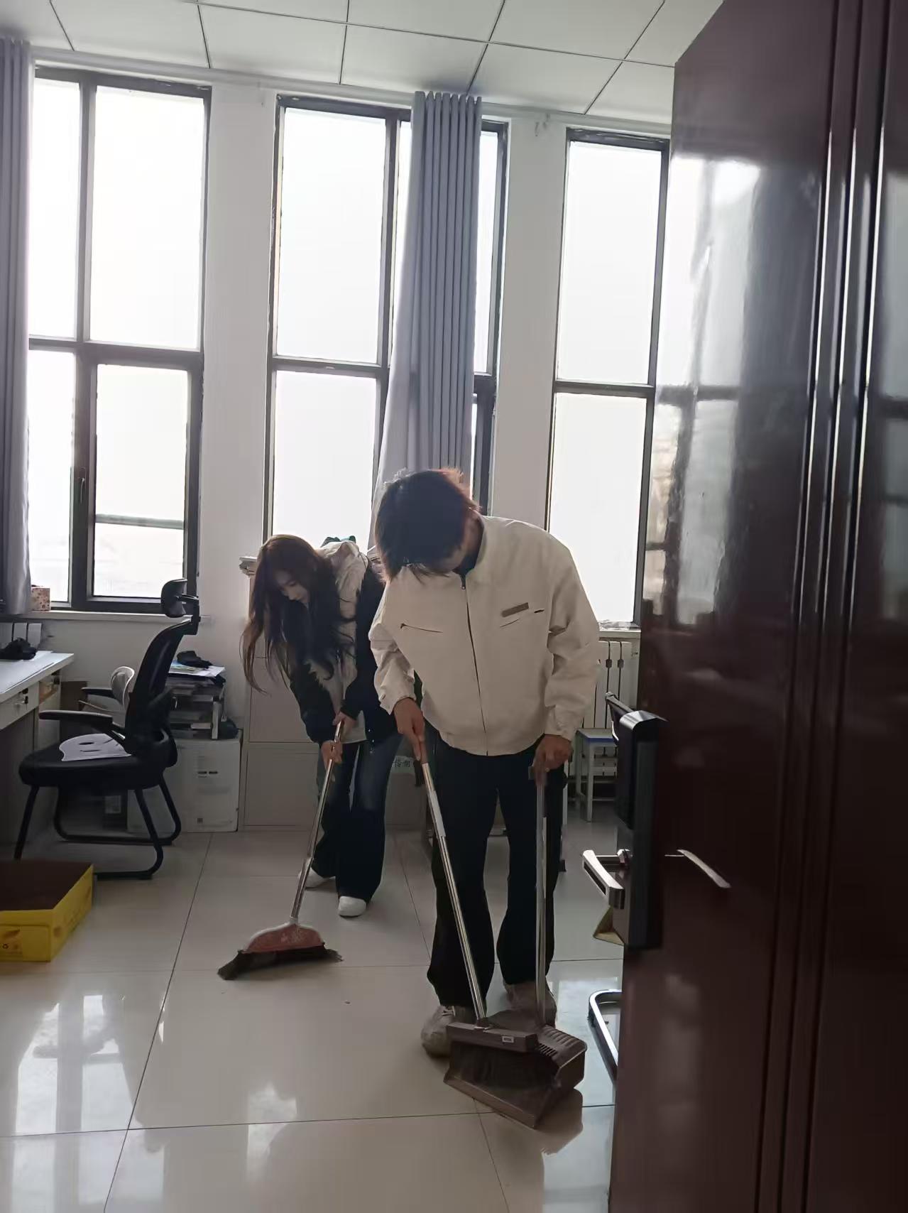 各部门依职能与专业优势推进工作。大学生艺术团清扫楼道、办公室,筹备文化活动;办公室深度清洁205教室;自律委员会清理教学楼外墙、楼梯扶手与绿化带;权益部检查维护消防用具;宣传部部分学生更是利用所学焊接加固松动护栏、破损桌椅框架。