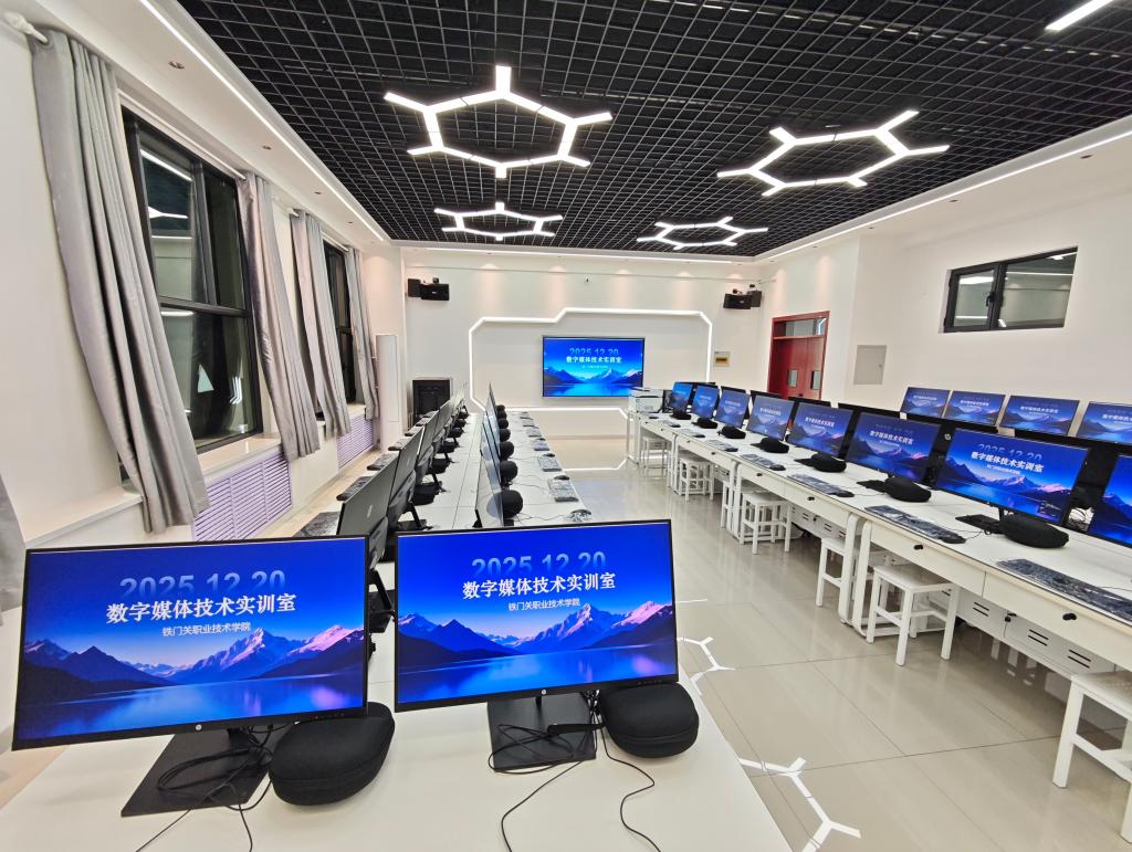 12月18日,铁门关职业技术学院财经商贸学院数字媒体综合实训中心完成建设并正式投入使用。该中心投入90万元资金建设,配备了高性能图形工作站、专业数码影像设备、数位绘图板等现代化教学设施,可同时满足40名学生开展实践教学。