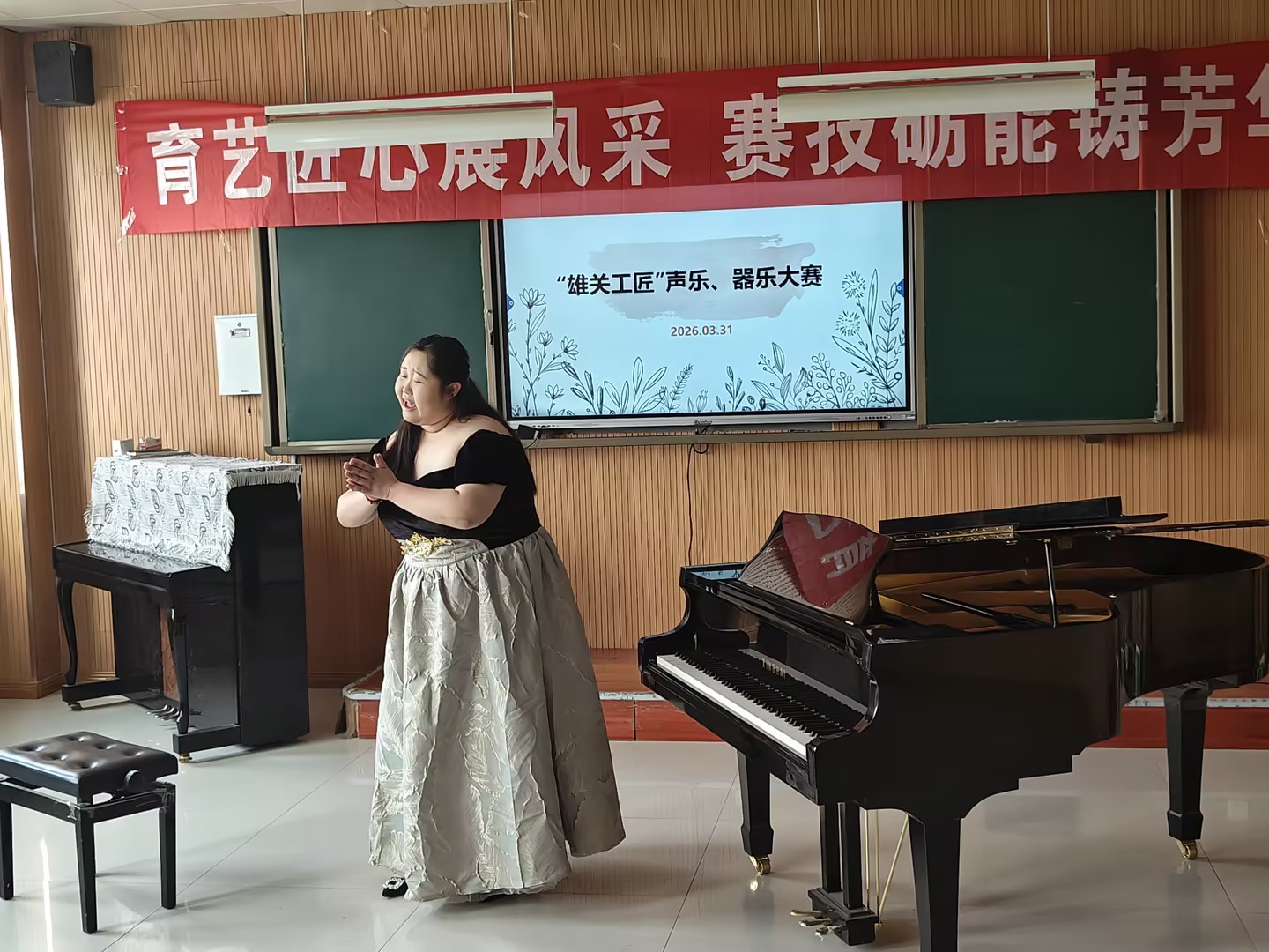 为搭建学生专业技能展示平台,深化“以赛促学、以赛促练”的育人理念,4月1日,铁门关职业技术学院教育艺术学院音乐教研室在德艺楼202教室举办“雄关工匠”声乐、器乐大赛。教育艺术学院音乐教研室全体教师及学院优秀学生参赛选手齐聚一堂,以艺竞技、以声传情,共同演绎一场兼具专业水准与匠心温度的艺术演绎。