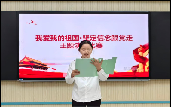 演讲环节,参赛选手精神饱满、情感真挚,依次登台展现风采。他们或讲述革命先辈事迹,传递红色信仰;或结合新时代发展成就,抒发民族自豪;精彩演讲赢得现场阵阵掌声。评委从内容、表达、情感、表现力等维度综合评审,最终评选出2名同学晋级校级比赛。