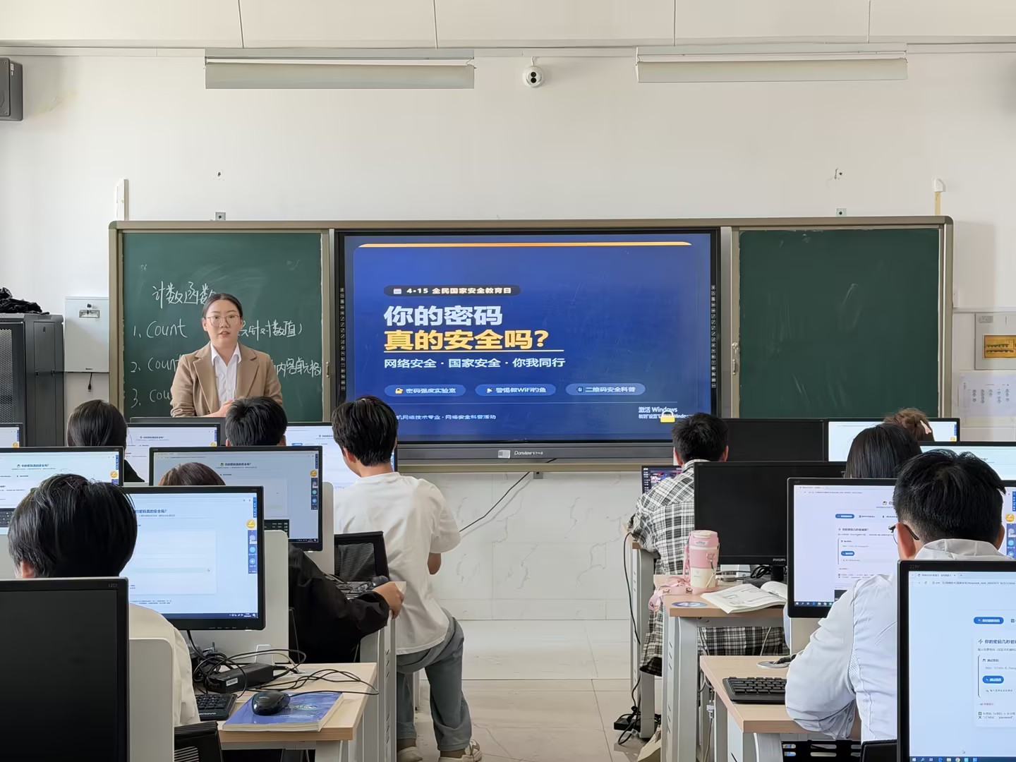 4月15日是第十一个全民国家安全教育日,为深入贯彻落实总体国家安全观,铁门关职业技术学院信息智能工程学院计算机教研室裴涛、韩紫芸、王成佳3位老师,分别在课堂上开展了趣味互动实验,带领计算机网络、党务工作、物联网应用技术等专业100余名学生,直观认识身边的网络风险。