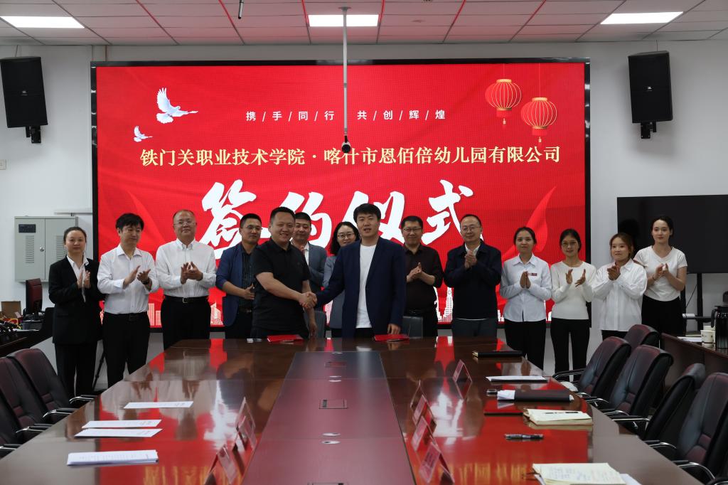 为深化产教融合,精准对接学前教育行业人才需求,4月17日,铁门关职业技术学院与喀什市恩佰倍幼儿园有限公司在燕赵楼126会议室举行校企合作签约仪式。学院领导,喀什市恩佰倍幼儿园有限公司董事长谭庆兵出席仪式,学院相关部门负责人及教育艺术学院师生代表参加。