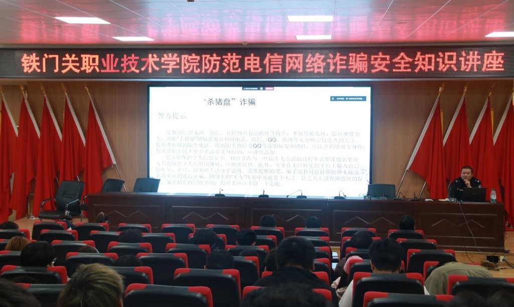 紧绷防范之弦,远离诈骗之害。10月11日,铁门关职业技术学院在全校范围内采取线上线下相结合的形式开展“防范电信网络诈骗”安全知识讲座,邀请学院警务室罗霄警官进行讲解。