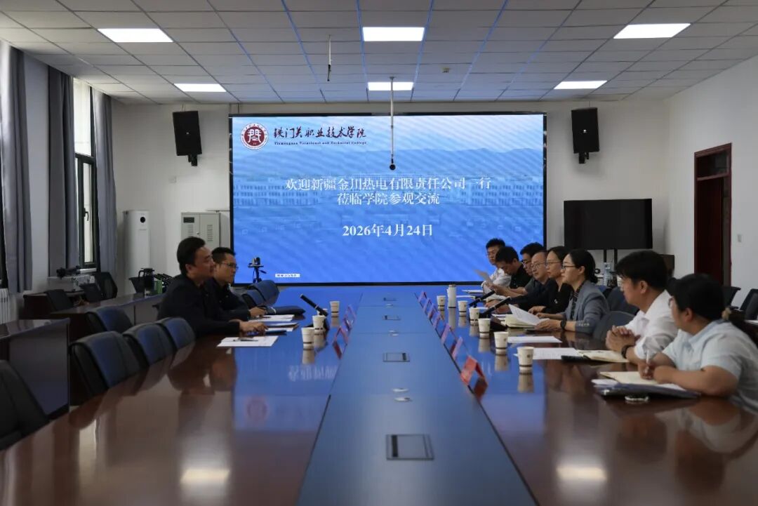 为深入推动产教融合、校企合作,精准对接企业技能型人才需求,4月24日,新疆金川热电有限责任公司党委书记、董事长胡兆龙一行3人莅临铁门关职业技术学院,就联合开设定向培养专班事宜进行交流洽谈。