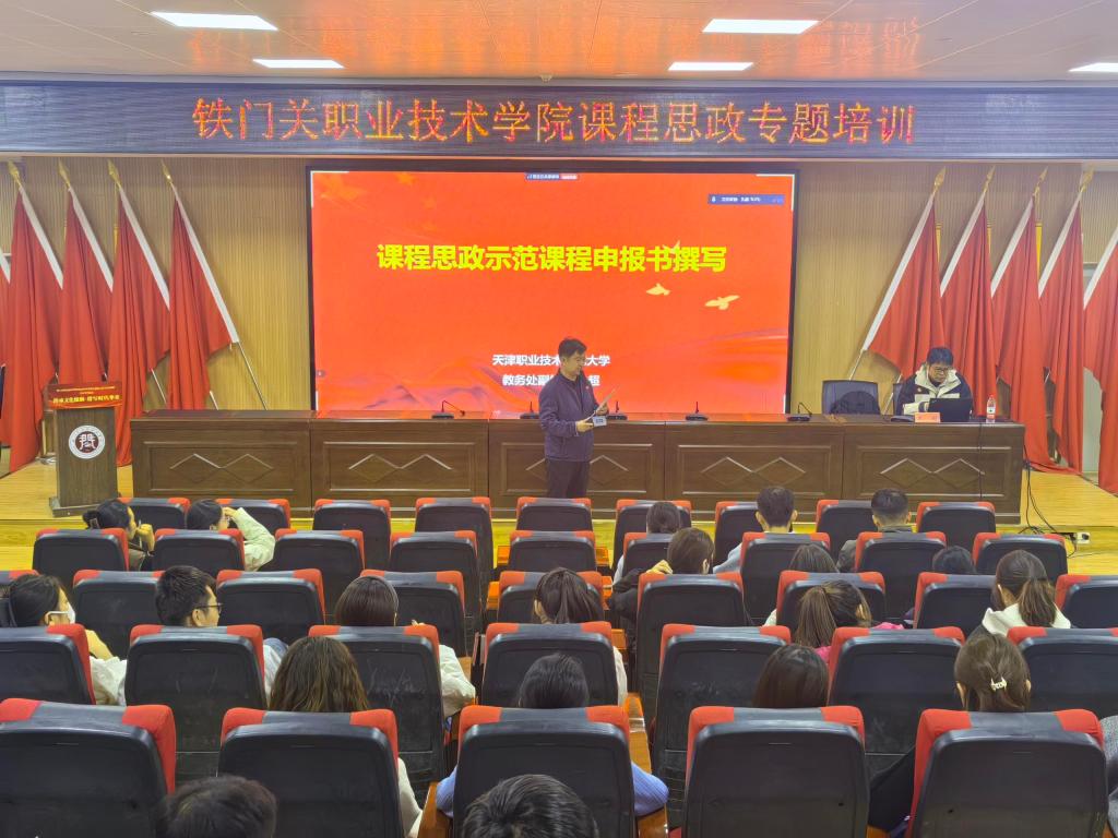 为全面落实立德树人根本任务,持续提升学院教师课程思政建设与教学能力水平,11月6日下午,铁门关职业技术学院于燕赵楼121阶梯教室举办课程思政专题培训。天津职业技术师范大学教务处副处长孔超应邀围绕“课程思政示范课程如何申报”为题作专题报告,各二级学院专任教师60余人参加本次培训。