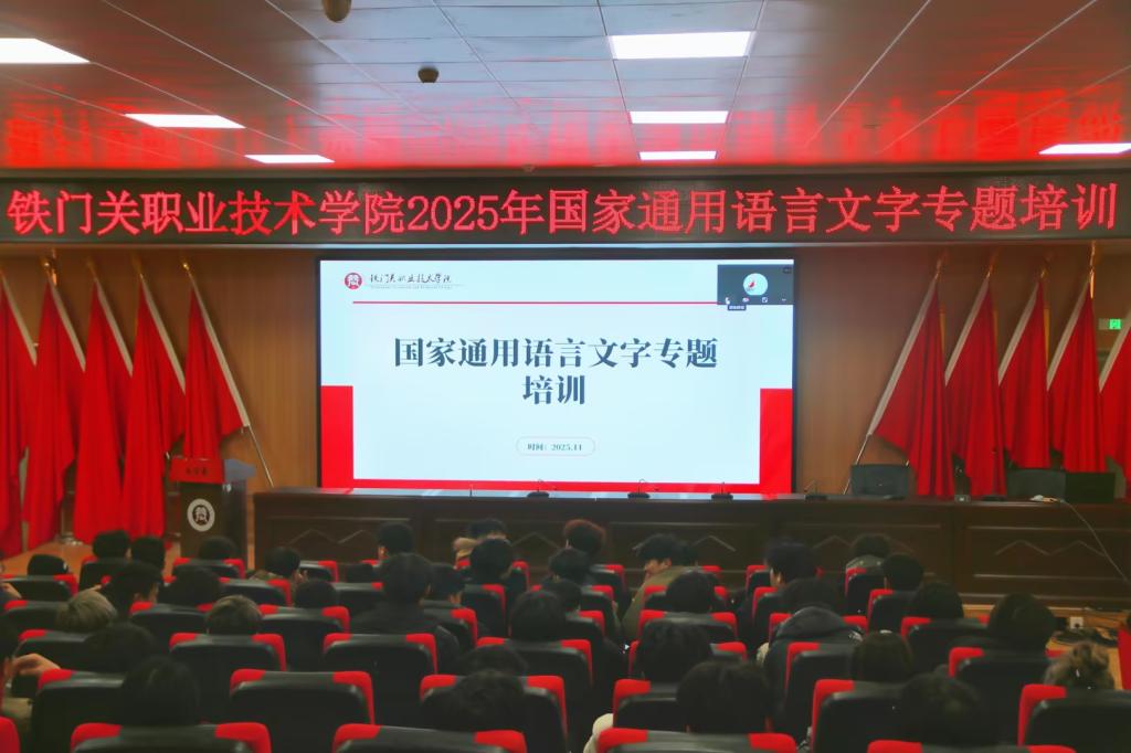 为深入贯彻落实国家通用语言文字推广普及工作要求,铸牢中华民族共同体意识,11月26日下午,铁门关职业技术学院在燕赵楼121阶梯教室组织开展“铸牢中华民族共同体意识,全面推广普及国家通用语言文字”专题讲座。学院6000余名师生通过线上线下结合的方式参加讲座。