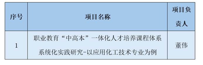 12月10日,铁门关职业技术学院教师董伟主持的《职业教育“中高本”一体化人才培养课程体系系统化实践研究——以应用化工技术专业为例》成功入选自治区教育科学规划课题。