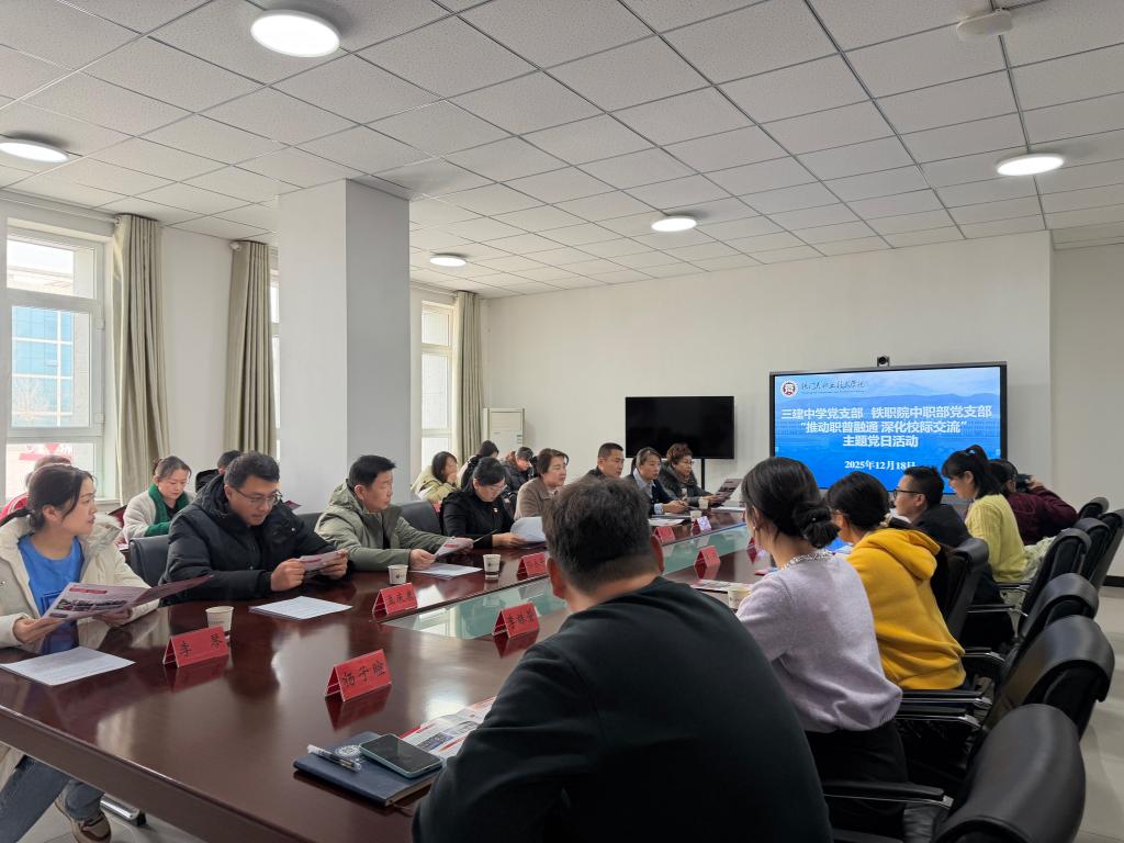 为积极探索职普融通发展新路径,搭建校际互学互鉴桥梁,12月18日下午,第二师三建中学党支部与铁门关职业技术学院中职部党支部联合开展 “推动职普融通,深化校际交流”主题党日活动。三建中学党支部副书记左莉娅一行15人莅临交流。