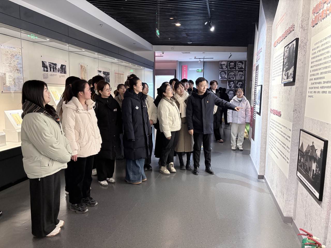 集中学习后,全体党员前往巴州博物馆进行实践研学。在“丝绸之路与巴州历史”展厅,一件件出土文物、一幅幅历史图景,生动展现了新疆地区多民族交往、交流、交融的悠久脉络。从汉唐中央治理边疆的遗迹,到宋元以来多民族交融的文物,党员教师们驻足观看、低声交流,在彩陶、简牍、织物与壁画前,直观感受着中华民族共同体形成发展的历史纵深。