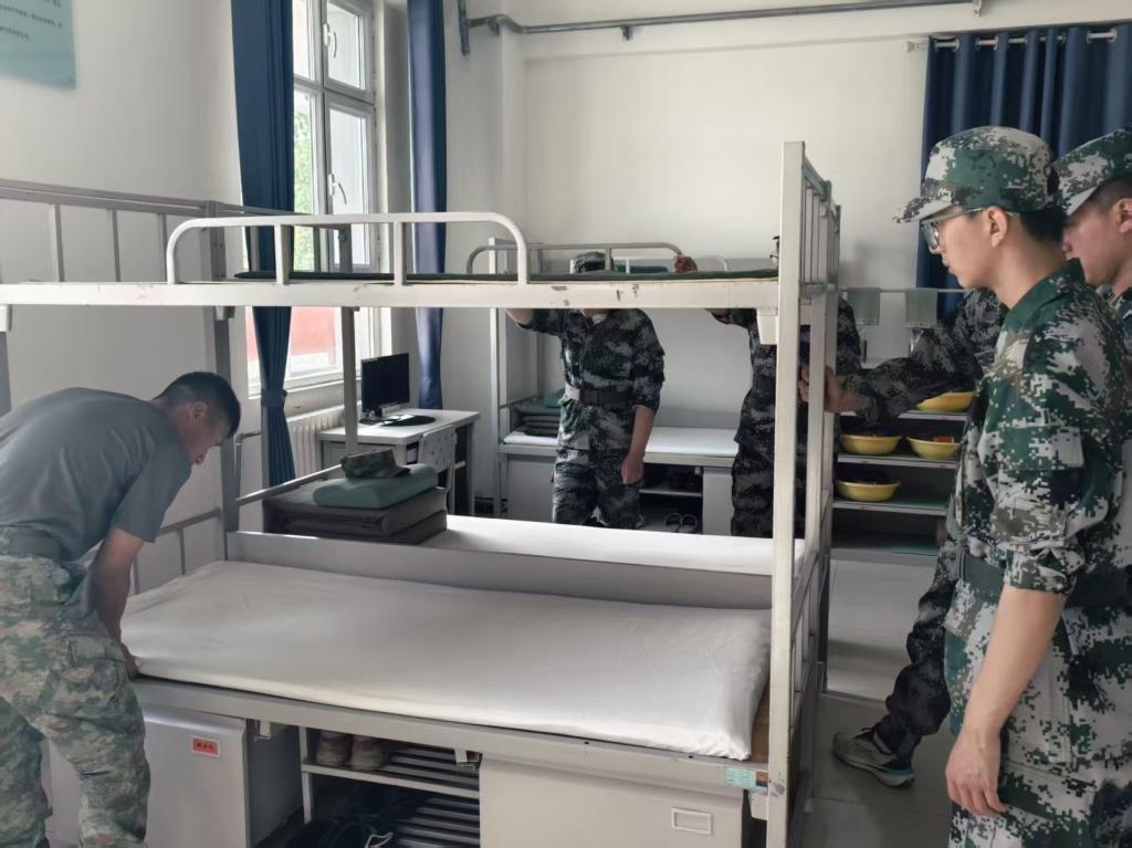 下午,学生们前往铁门关某部队参加“当兵的一天”沉浸式实践课程。在部队教官的指导下,学生认真学习军队内务整理,体验军人日常训练内容。从折叠军被到物品规范摆放,均严格按照军营标准实施操作。
