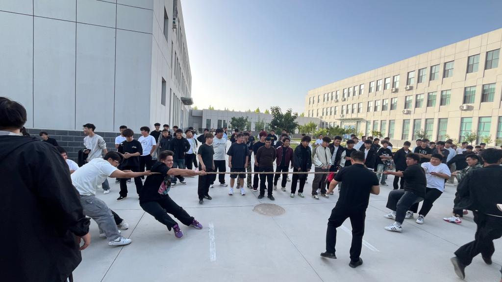 9月29日,铁门关职业技术学院化学与材料工程学院在精技楼前举办“迎新生”拔河比赛。学院2025级新生组成15支队伍,200余名新生参加活动。