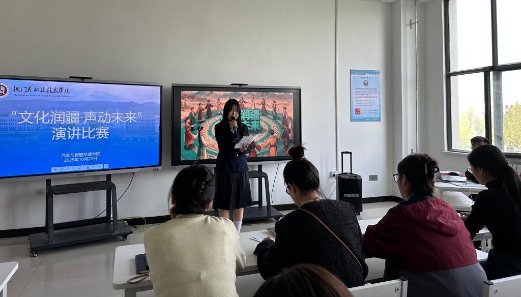 10月22日,铁门关职业技术学院汽车与智能交通学院于匠心楼汽车实训楼举办“文化润疆·声动未来”主题演讲比赛决赛。作为学院“文化润疆”工程的重要实践,本次活动深度融合职业教育特色与中华文化,全院12名选手同台竞技,近50名师生齐聚一堂,以铿锵之声诠释新时代青年的文化自信与使命担当。