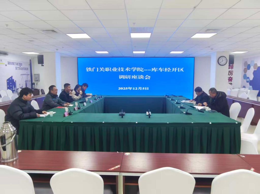 调研团队首先与库车经济技术开发区管委会相关负责同志举行座谈。苏强介绍了学院的办学历史、专业特色、人才培养模式及毕业生概况。开发区就业服务中心负责人详细介绍了开发区的产业布局、企业发展现状及人才需求,重点围绕学生实习实践、就业岗位供给等方面进行了说明。双方围绕校企协同育人、课程共建、技术合作等方面进行了深入交流,并就进一步推动产学研融合达成共识。