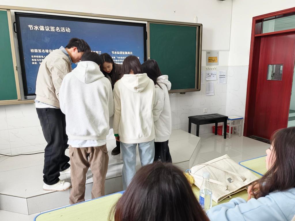 本次活动紧扣节水护水核心,以沉浸式学习、互动式体验、实践式参与为路径,精心打造节水知识专题讲座、主题班会、节水海报设计大赛、节水习惯养成打卡、节水倡议签名多元载体,全面普及水资源国情、科学用水常识与节水护水价值。活动现场,师生认真学习水资源保护知识,积极参与创意设计与互动,在签名承诺中坚定节水信念,在实践体验中强化责任担当,切实将节水理念内化于心、外化于行。