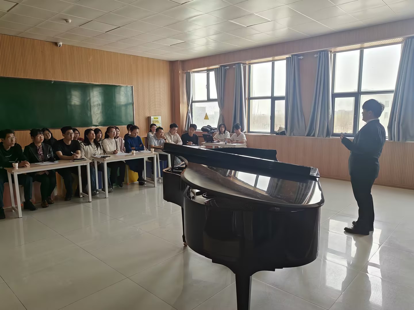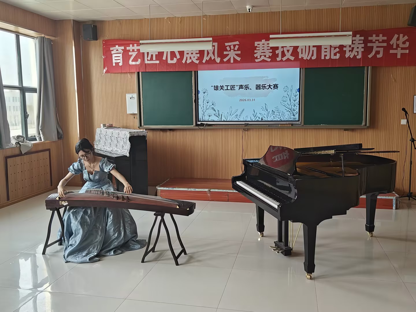 为搭建学生专业技能展示平台,深化“以赛促学、以赛促练”的育人理念,4月1日,铁门关职业技术学院教育艺术学院音乐教研室在德艺楼202教室举办“雄关工匠”声乐、器乐大赛。教育艺术学院音乐教研室全体教师及学院优秀学生参赛选手齐聚一堂,以艺竞技、以声传情,共同演绎一场兼具专业水准与匠心温度的艺术演绎。
