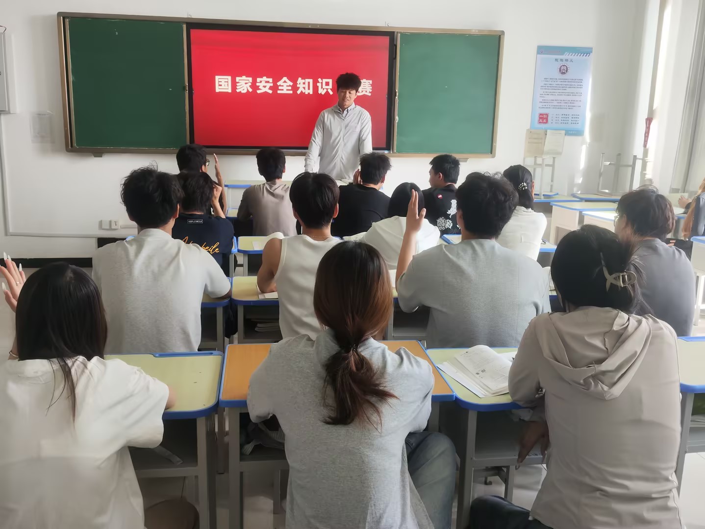 随后,活动还组织师生进行国家安全知识抢答竞赛,题库涵盖国家安全法律法规、专业安全规范及应急防护知识。25级应用化工技术3班学生何亚特说:“竞赛既拓宽了我的知识面,又加深了记忆。让我深刻认识到,国家安全与每个人息息相关,今后会自觉树立安全意识,筑牢思想防线。”