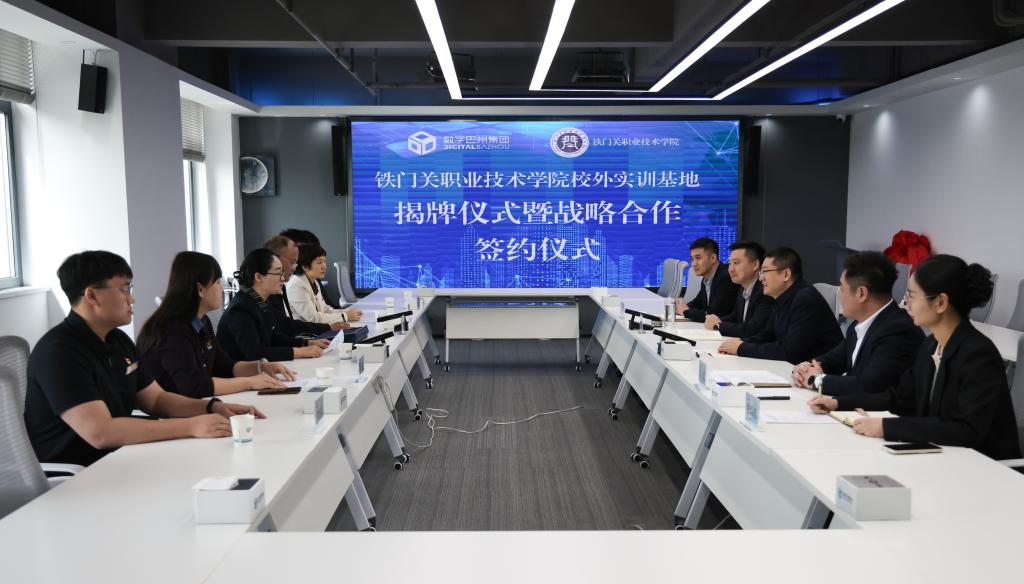 4月21日,铁门关职业技术学院与数字巴州产业发展投资(集团)有限公司校外产教融合实训基地揭牌仪式在数字巴州集团举行。学院党委书记熊红红,党委委员、副院长刘学明、巴州产教融合服务中心主任张传河,数字巴州集团党委副书记、董事长李彦东出席仪式,集团相关负责人、信息智能工程学院相关负责人及师生代表参加。