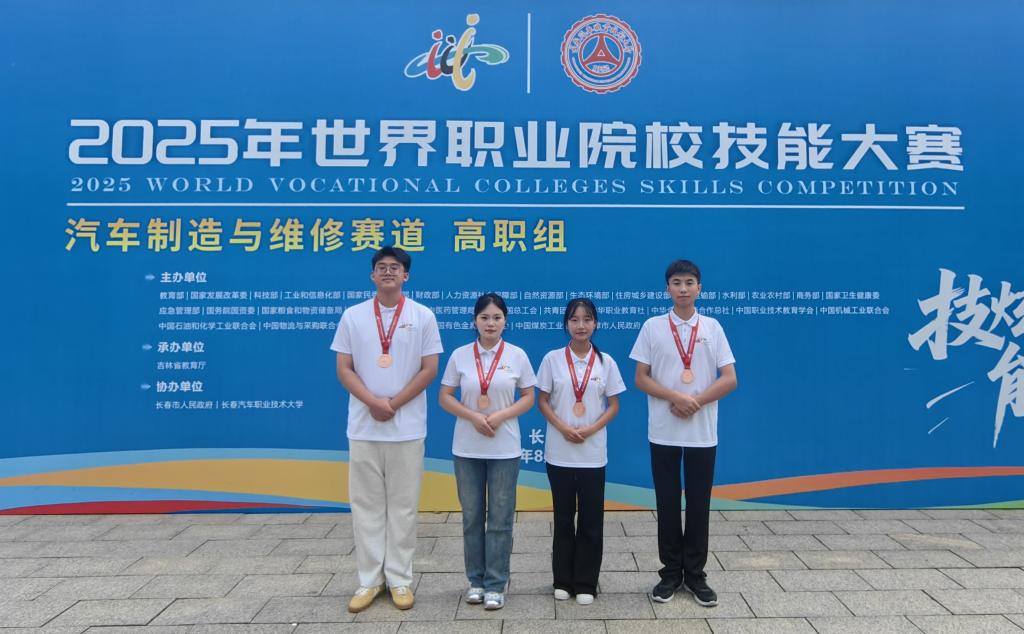 8月29日,在吉林长春举办的2025年世界职业院校技能大赛决赛汽车制造与维修赛道(高职组)中,铁门关职业技术学院汽车与智能交通学院王晓庆、张智奥、陈书琦、王依晗4位学生组成的参赛团队,凭借精湛技艺与稳定发挥,从全国82支参赛队伍中脱颖而出,荣获铜奖。