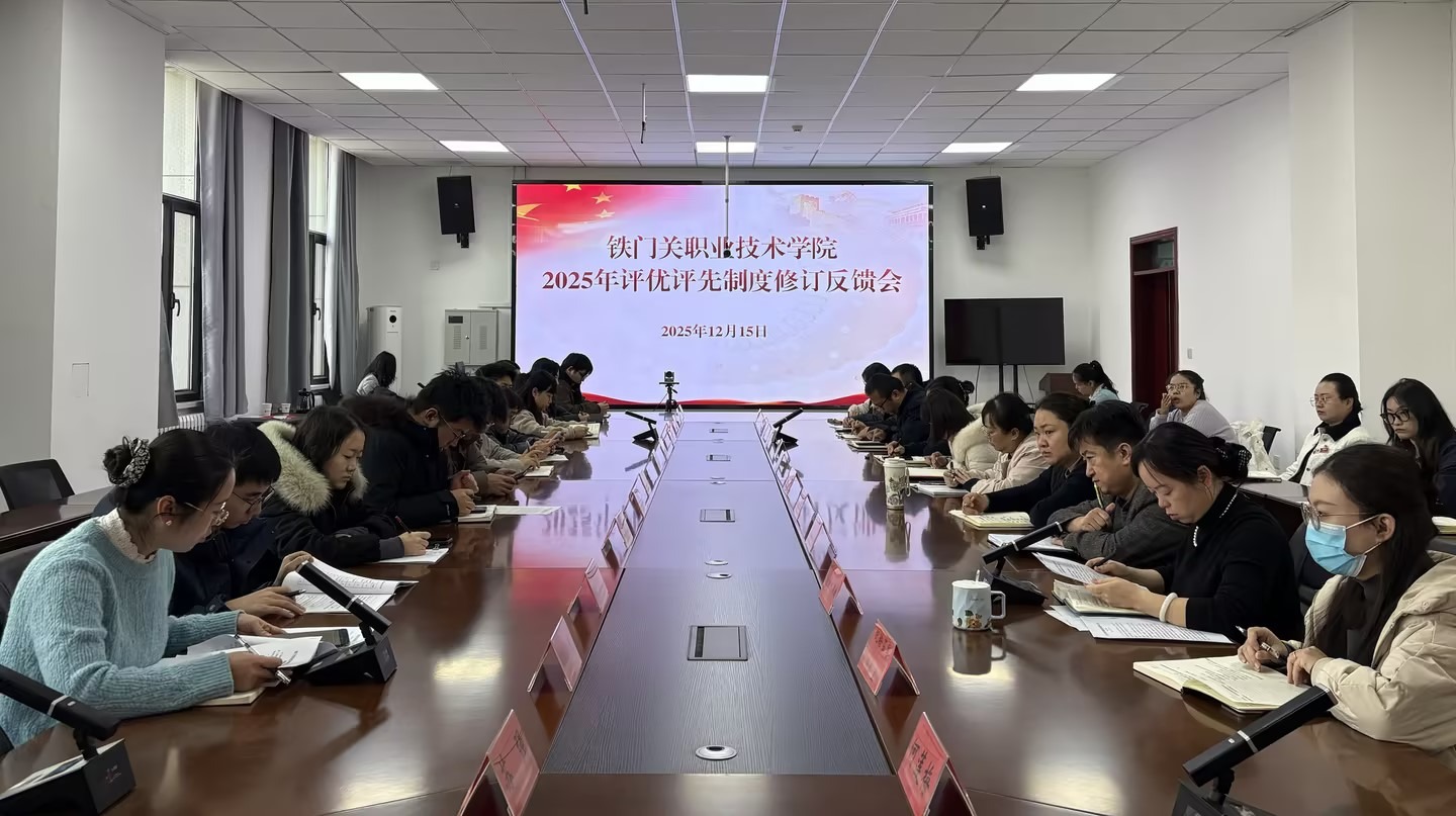 为深入贯彻落实学院人事管理制度改革要求,进一步健全科学、规范、高效的评先评优工作机制,充分调动教职工的积极性和创造性,12月15日上午,铁门关职业技术学院组织人事处召开了2025年出台评先评优制度修订情况反馈会议。各处室、各分院(部)负责人及部分教职工代表参加了会议。