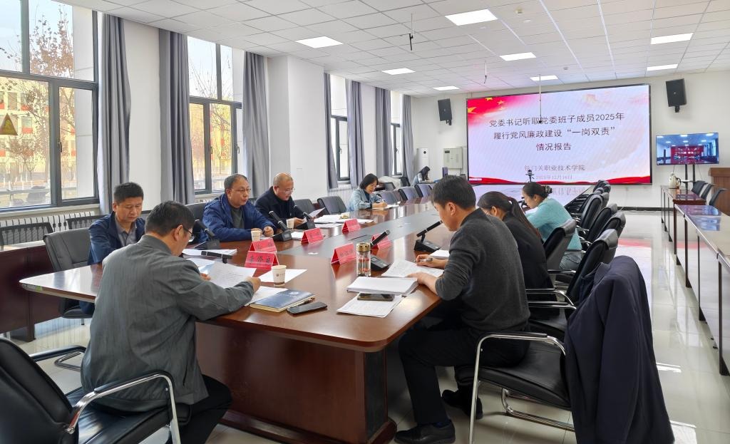 为深入贯彻全面从严治党战略方针,压紧压实党委班子成员党风廉政建设“一岗双责”,12月16日,铁门关职业技术学院党委书记李贤良主持召开专题汇报会议,全体党委班子成员参会。