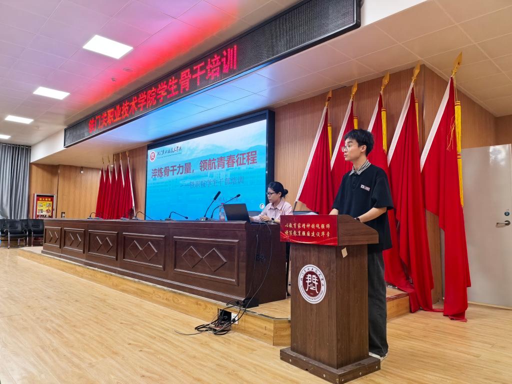 为提升学生骨干的综合素养和履职能力,推动学院育人工作高质量发展,9月18日,铁门关职业技术学院学生工作处举办学生骨干培训班,全体学生骨干参加。培训由信息智能工程学院党支部副书记孙娜主讲。