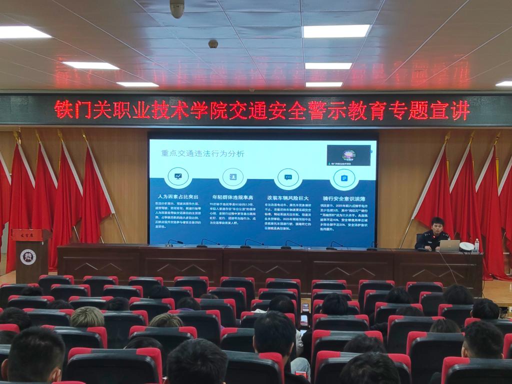 11月19日,铁门关职业技术学院在全校范围内采取线上线下相结合的形式开展“交通安全警示教育”宣讲,邀请库尔勒垦区交通管理大队秩序中队民警赵龙主讲。